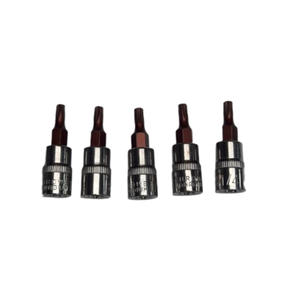 Este dado punta Torx T20 es un componente especializado para técnicos que operan con sistemas de sujeción modernos que exigen exactitud y durabilidad. La base del dado está forjada en Acero al Cromo Vanadio (Cr-V), garantizando una transferencia de fuerza estable, mientras que la punta está rectificada para encajar de forma óptima en el tornillo, reduciendo la probabilidad de deformaciones en la cabeza del sujetador.