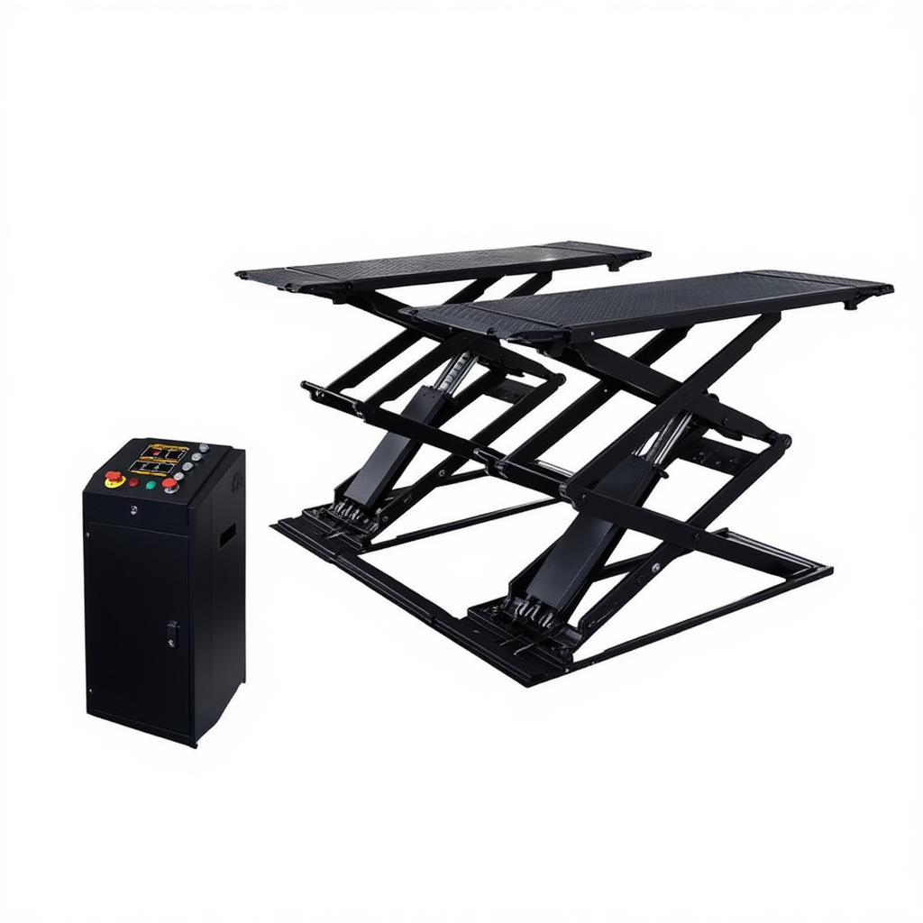 El elevador de tijera DURATECH destaca por su diseño ultradelgado, optimizado para una instalación rápida directamente sobre el suelo sin necesidad de fosa. Su estructura está fabricada con brazos de soporte en acero de alta resistencia Q345, lo que garantiza una durabilidad excepcional y estabilidad bajo cargas pesadas. Gracias a su sistema de cuatro cilindros, este equipo proporciona una potencia superior para una elevación suave y constante.