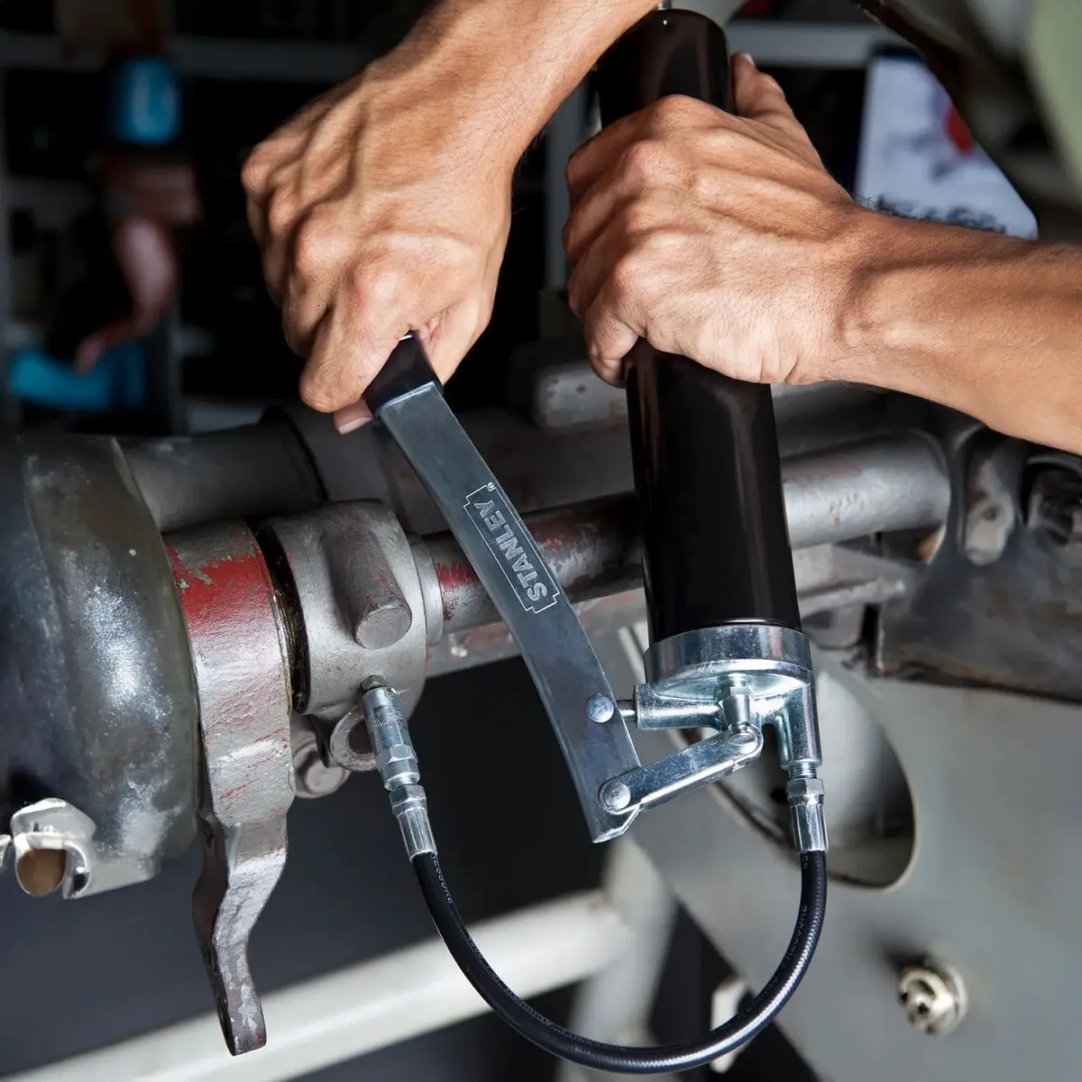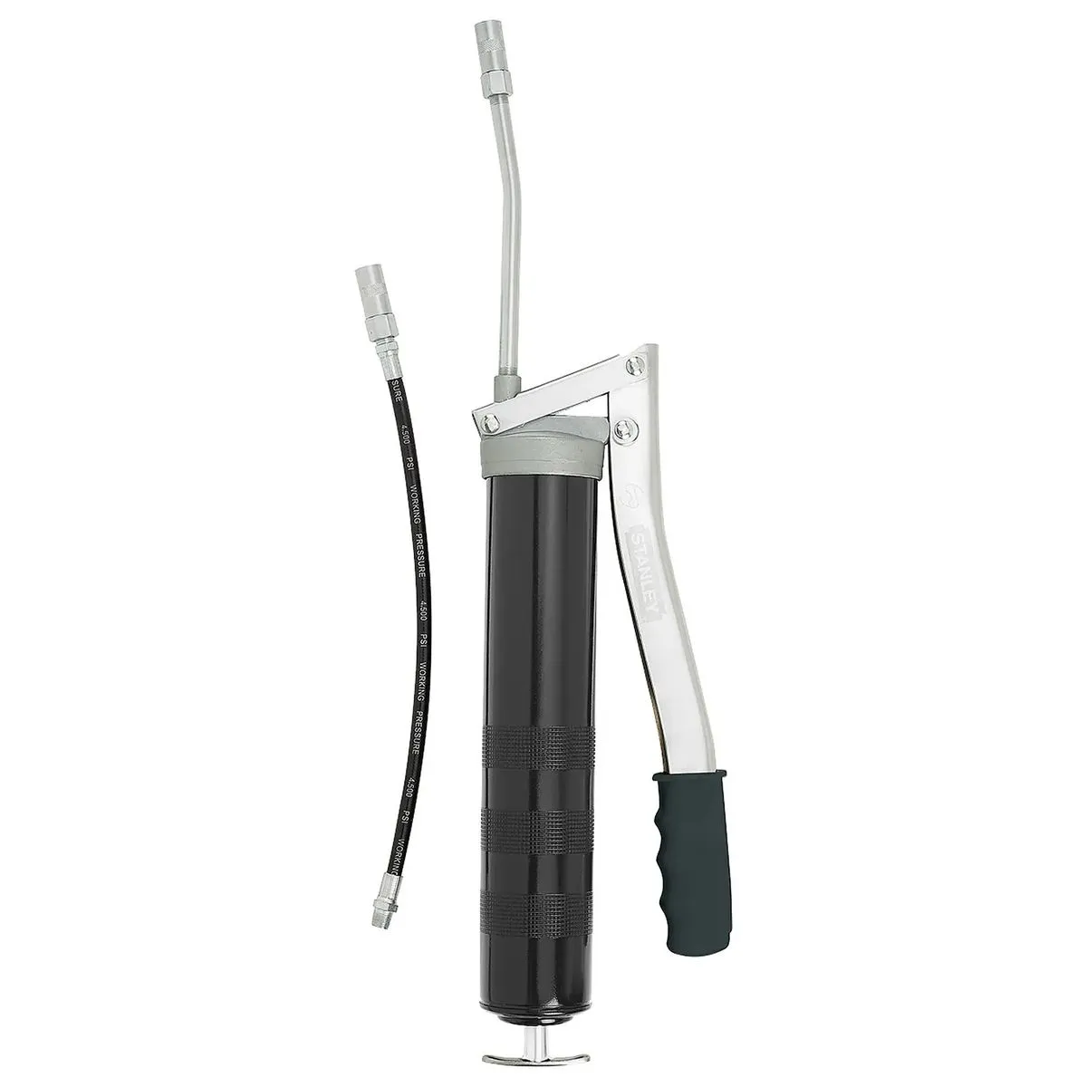 La grasera 78031 de STANLEY es un equipo robusto construido para soportar las exigencias del mantenimiento preventivo en entornos industriales y automotrices. Cuenta con un acabado en color negro de alta durabilidad y un émbolo montado con ajuste de precisión, lo que garantiza un sellado hermético que evita fugas de grasa desde el depósito hacia el exterior.