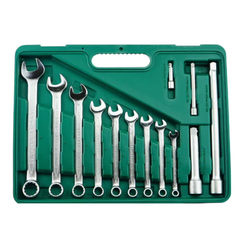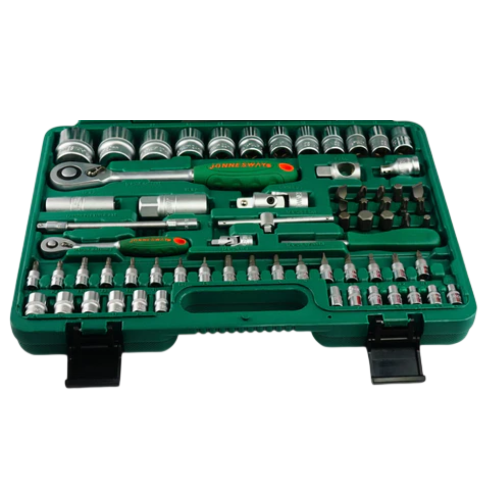 El set S04H52482S de JONNESWAY es considerado la “navaja suiza” del mecánico profesional debido a su equilibrio entre peso y funcionalidad. Fabricado en acero de alta resistencia, el kit destaca por sus mangos de trinquete antideslizantes de 48 dientes, que ofrecen un arco de giro equilibrado para trabajar en espacios confinados.