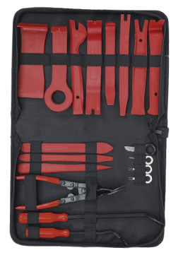 Además de las palancas de polímero, el kit incluye herramientas metálicas especializadas, como pinzas para clips, que facilitan la extracción de sujetadores de presión sin romperlos. Todo el conjunto se presenta de forma organizada en un práctico estuche portátil que protege las herramientas y facilita su transporte dentro del taller, garantizando que el profesional siempre tenga a mano la pieza exacta para cada tipo de conector o panel.