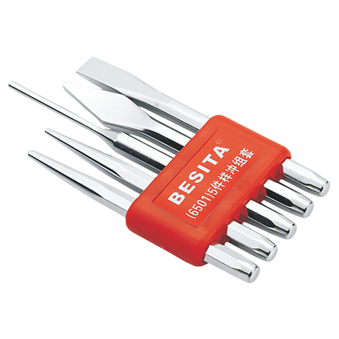 El Kit BESITA 6501 es una solución integral para técnicos que requieren herramientas de precisión para la manipulación de metales y remoción de componentes. Incluye un punzón de centro para marcar puntos de perforación exactos y evitar el deslizamiento de brocas, así como punzones cónicos y paralelos especializados para la extracción segura de pasadores y pernos.