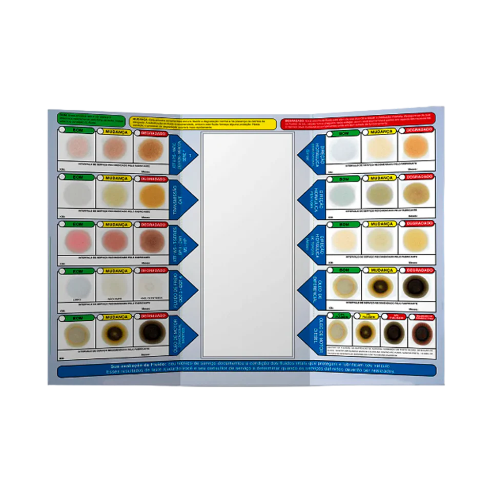 Herramienta de diagnóstico visual y químico diseñada para determinar con precisión el estado de degradación de los fluidos vitales del vehículo. Mediante tecnología de cromatografía, estas tarjetas permiten identificar contaminantes y la pérdida de propiedades en aceites y lubricantes, facilitando una decisión informada sobre su reemplazo.